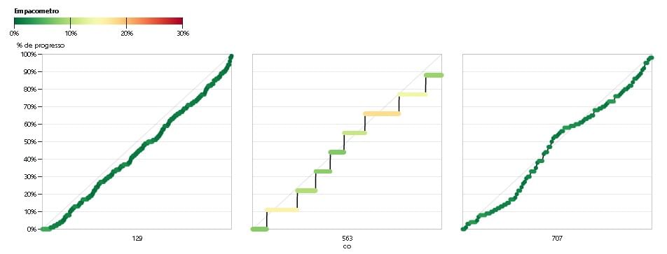 A visualização de progresso é colorida pela escala do Empacômetro.